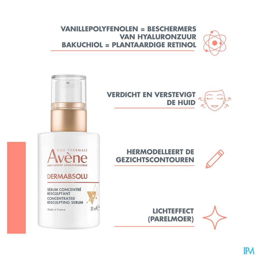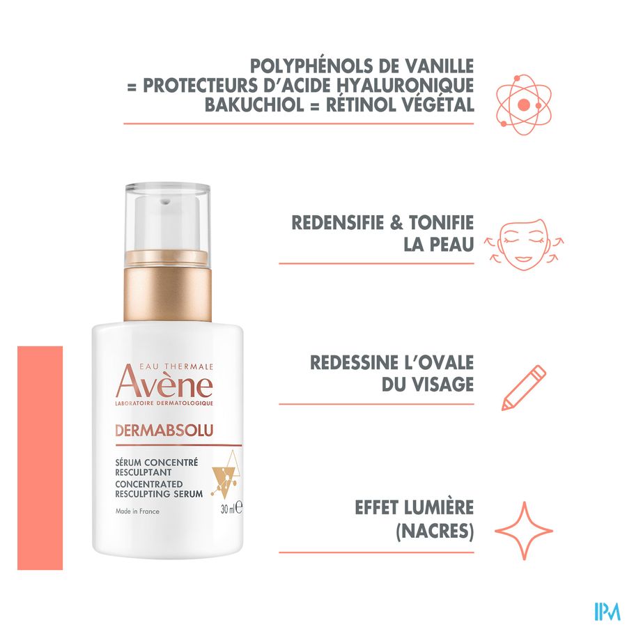 Na verloop van tijd verandert de huid: Ze wordt minder dicht, droger en doffer... Dit verslappende effect heeft invloed op de vorm van het gezicht: In de dermatologie staat dit bekend als de inversie van de JEUGDIGE DRIEHOEK. Voor een effectieve, diepgaande werking hebben de Dermatologische Laboratoria van Avène het Geconcentreerd Vormgevend Serum ontwikkeld. Het werkt in op de 3 klinische tekenen van veroudering: structuurverlies, droogheid en een ongelijkmatige teint. Het TRIO van actieve ingrediënten op basis van bakuchiol (1,5%), pro-ceramiden (2%) en vanillepolyfenolen helpt de huid VOLLER te maken, opnieuw VORM te geven en de gevoelige huid die op zoek is naar comfort INTENSIEF te VOEDEN.
