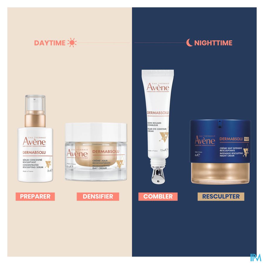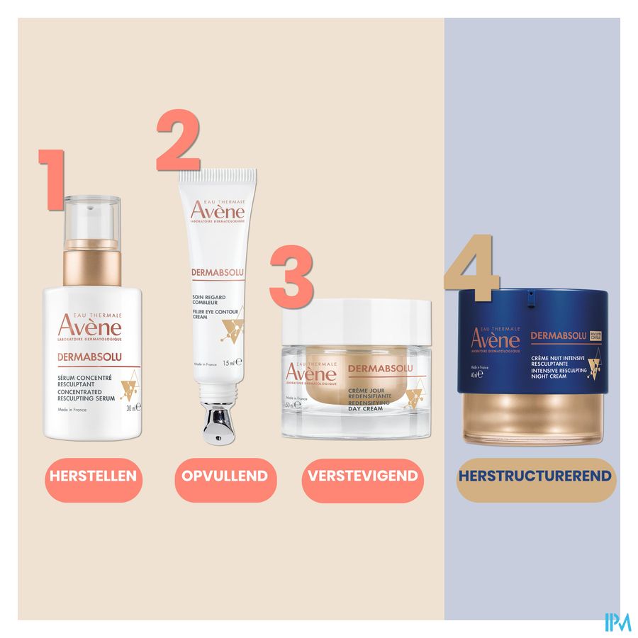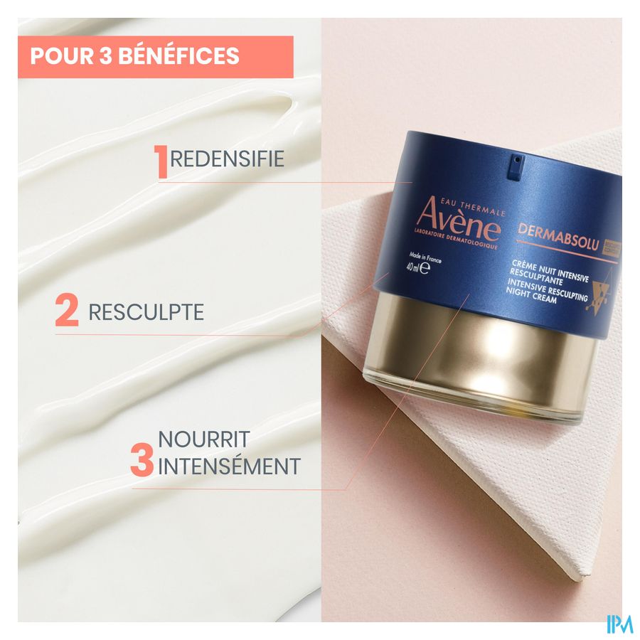 Na verloop van tijd verandert de huid: Ze wordt minder dicht, droger en doffer... Dit verslappende effect heeft invloed op de vorm van het gezicht: In de dermatologie staat dit bekend als de inversie van de JEUGDIGE DRIEHOEK. Voor een effectieve werking hebben de Dermatologische Laboratoria van Avène de Intensieve Vormgevende Nachtcrème ontwikkeld. Het werkt in op de 3 klinische tekenen van veroudering: structuurverlies, droogheid en een ongelijkmatige teint. Het TRIO van actieve ingrediënten op basis van bakuchiol (1%), pro-ceramiden (2,1%) en niacinamide (2%) helpt de huid VOLLER te maken, opnieuw VORM te geven en de gevoelige huid die op zoek is naar comfort INTENSIEF te VOEDEN.