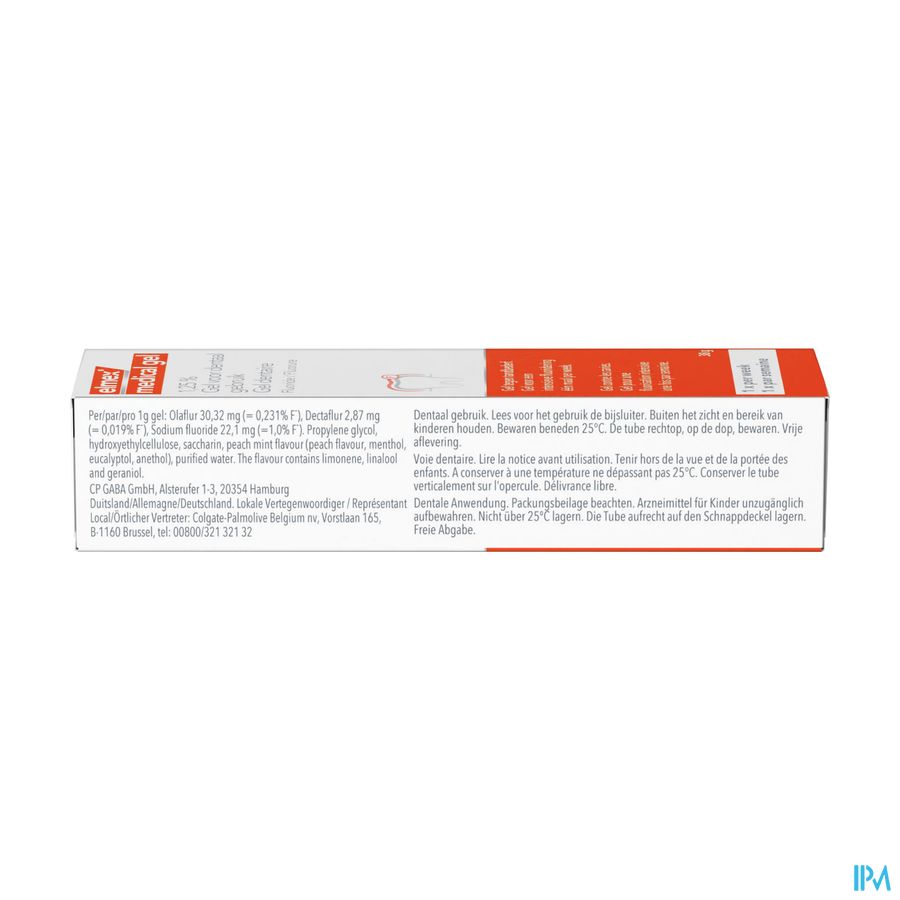 Gel tegen tandbederf, met twee bestanddelen uit de klasse de fluoridehoudende amines (olaflur en dectaflur) en natriumfluoride.