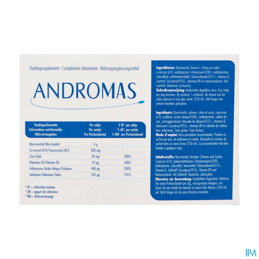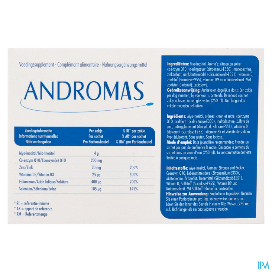 ANDROMAS® is een voedingssupplement op basis van myo-inositol, vitamine D, biobeschikbaar foliumzuur 5-MTHF (Quatrefolic®), selenium, zink en co-enzym Q10.