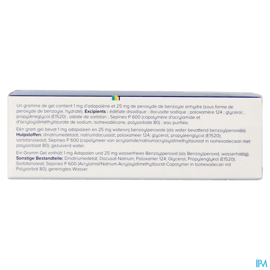 Eén gram gel bevat 1 mg adapaleen en 25 mg watervrij benzoylperoxide (als water bevattend benzoylperoxide).