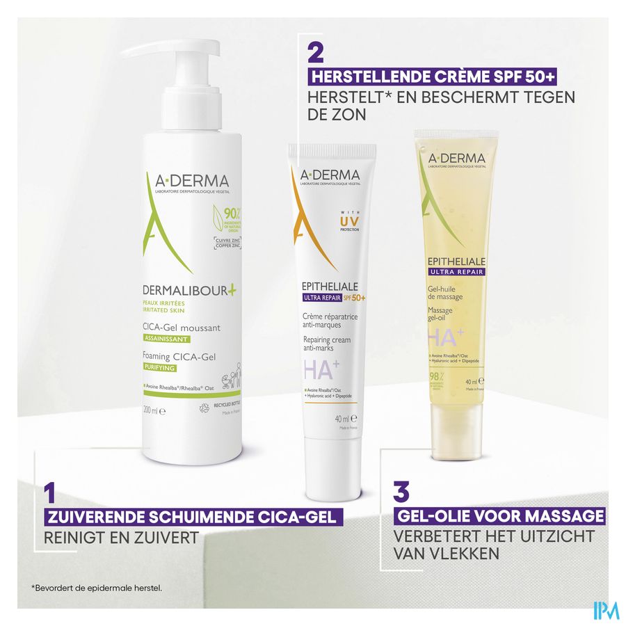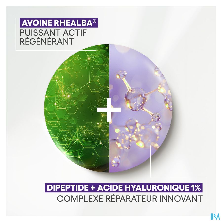 EPITHELIALE ULTRA REPAIR SPF50+ 2-in-1 herstellende crème helpt de beschadigde huid te herstellen* en biedt een zeer hoge SPF50+ zonnebescherming, met een dubbele werking tegen littekens en pigmentvlekken. Deze herstellende crème voor gezicht en lichaam bevat een gepatenteerd** herstellend complex van 3 actieve ingrediënten genaamd Cicahyalumide®, bestaande uit dipeptide, hyaluronzuur en Rhealba® haverextract. Het bevat ook Kattenklauw voor zijn ultrakalmerende eigenschappen. En om een optimale tolerantie tijdens het gebruik te garanderen, bevat het fotoprotectieve systeem slechts 4 filters in een geoptimaliseerde concentratie. Deze herstellende crème voor de beschadigde huid is ideaal om de huid dagelijks te kalmeren en te beschermen. Hij is parfumvrij en geschikt voor zowel volwassenen als kinderen, en kan meerdere keren per dag worden aangebracht op het gezicht en lichaam. Rhealba® Haver van biologische landbouw Veganistische info: geen ingrediënten van dierlijke oorsprong