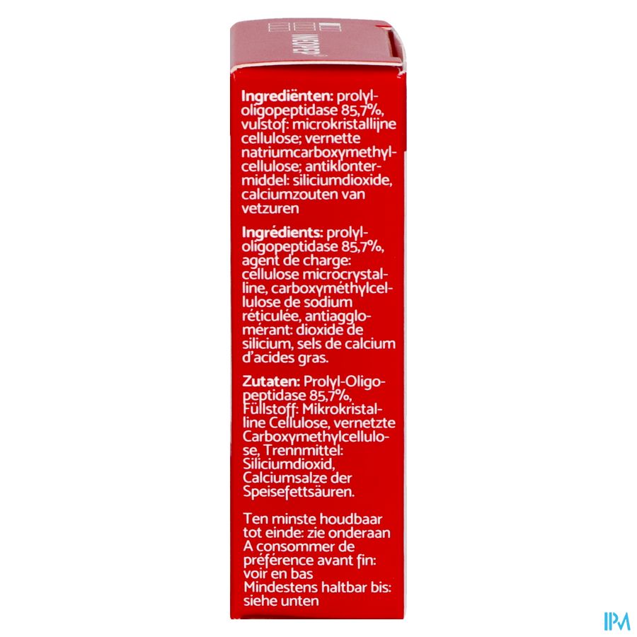 Prolyl-oligopeptidase 85,7%, vulstof: mikrocristallijne cellulose; vernet carboxymethylcellulose; antiklontermiddelen: siliciumdioxide, Calciumstearaat.