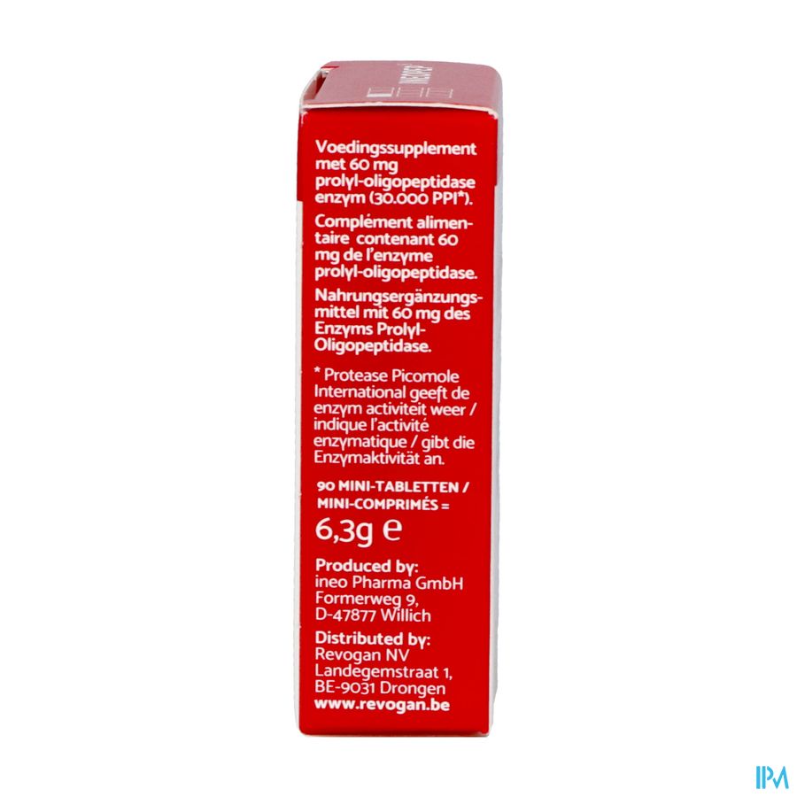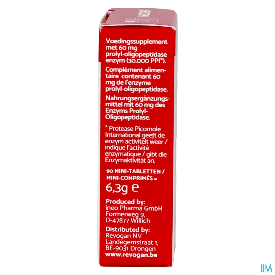 Ineopep bevat prolyl-oligopeptidase. Het kan een glutenvrij dieet niet vervangen en is niet bedoeld voor de behandeling of preventie van coeliakie, tarweallergie of overgevoeligheid voor gluten. Ineopep is alleen geschikt voor volwassenen. Ineopep in dispenser bevat 30.000 eenheden PPI* van het enzym prolyl-oligopeptidase (60mg) per tablet. De dispenser is ideaal voor thuis en onderweg, en zorgt voor een gemakkelijke dosering. Dankzij de beperkte omvang van de tabletten is een inname zelfs mogelijk zonder water. *PPI staat voor 'Protease Picomole International' en geeft de enzymactiviteit aan.
