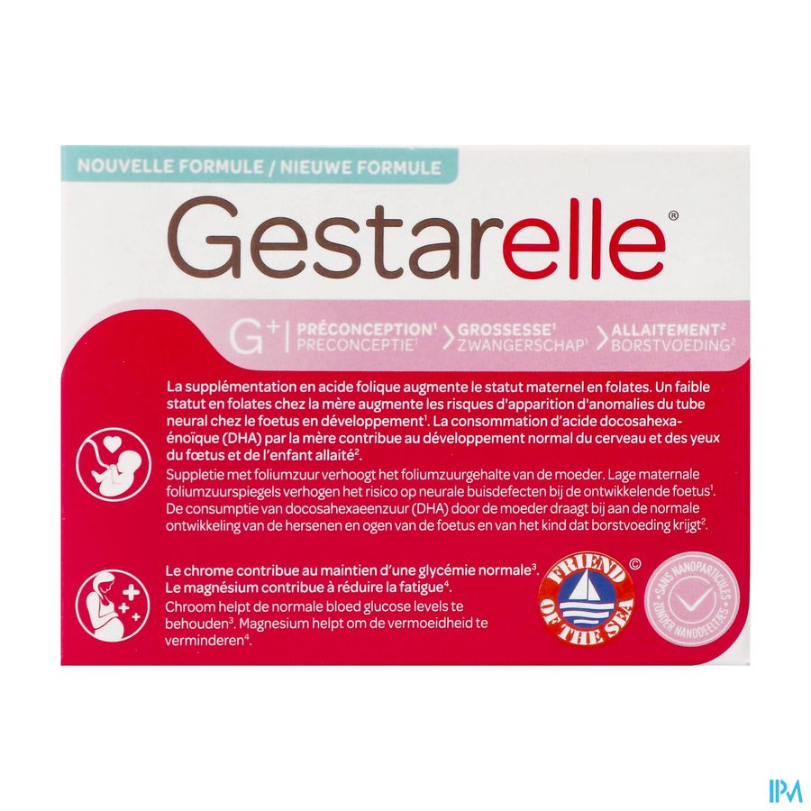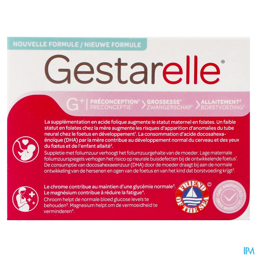 Gestarelle G + wordt aanbevolen vanaf de kinderwens tot tijdens de zwangerschap en borstvoeding. Het is raadzaam om te starten met Gestarelle G + vanaf de preconceptie om zo de aanmaak van foliumzuur (vitamine B9) te bevorderen. Foliumzuur speelt een rol in het celdelingproces en draagt bij tot een goede groei van de weefsels van de moeder.