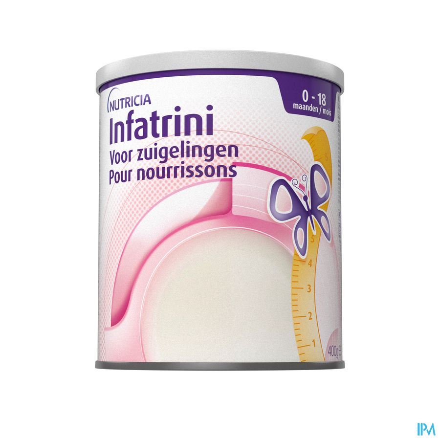 Infatrini is een energierijke, voedingskundig volledige dieetvoeding voor zuigelingen met groeiachterstand, verhoogde energiebehoefte en/of vochtbeperking, geschikt vanaf de geboorte tot een leeftijd van 18 maanden of tot een gewicht van 9 kg.