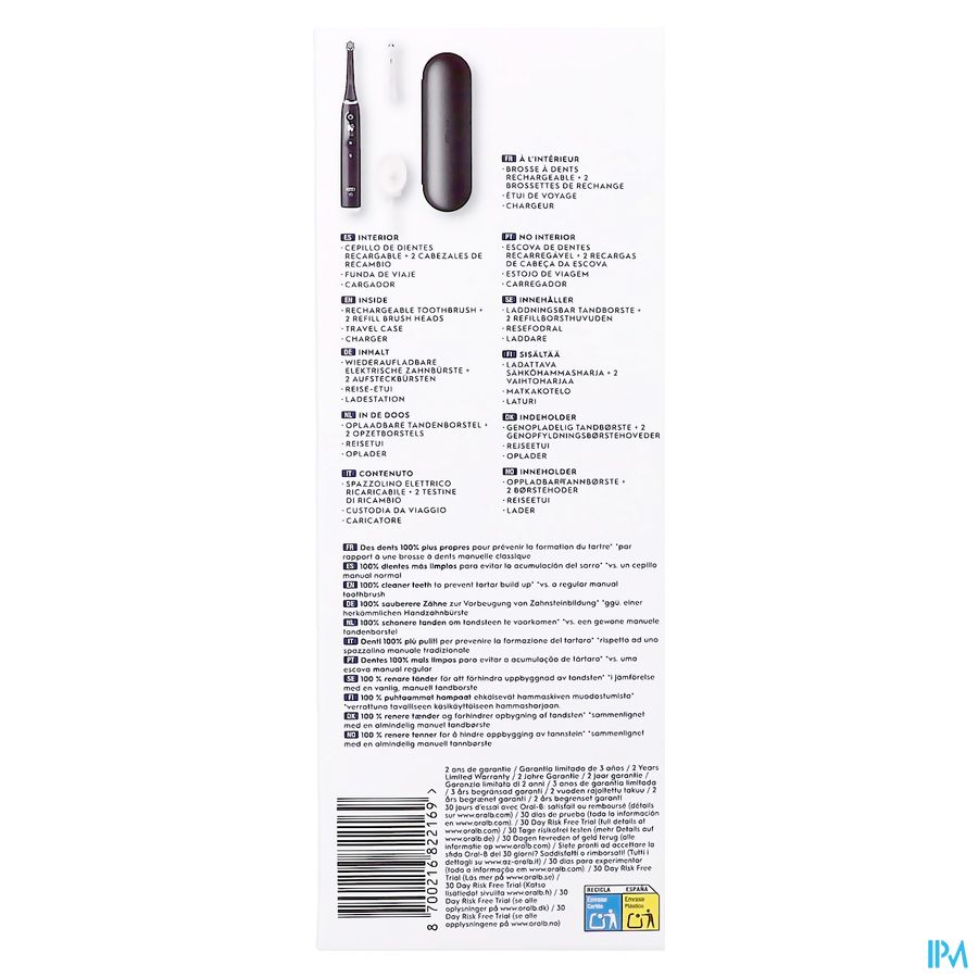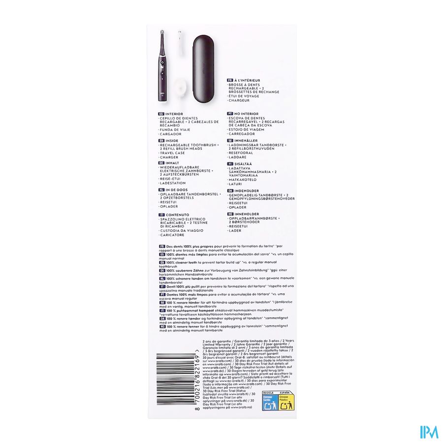 Bevat: 1 iO6-handvat met ultimate clean opzetborstel, 1 reisetui, 1 oplader