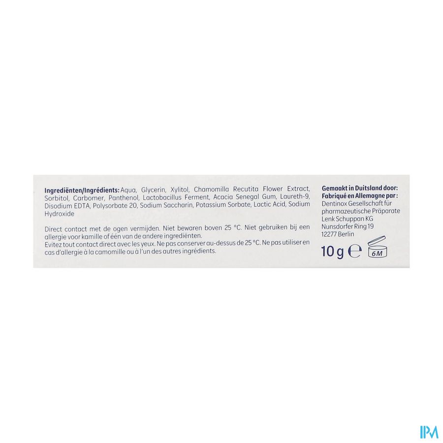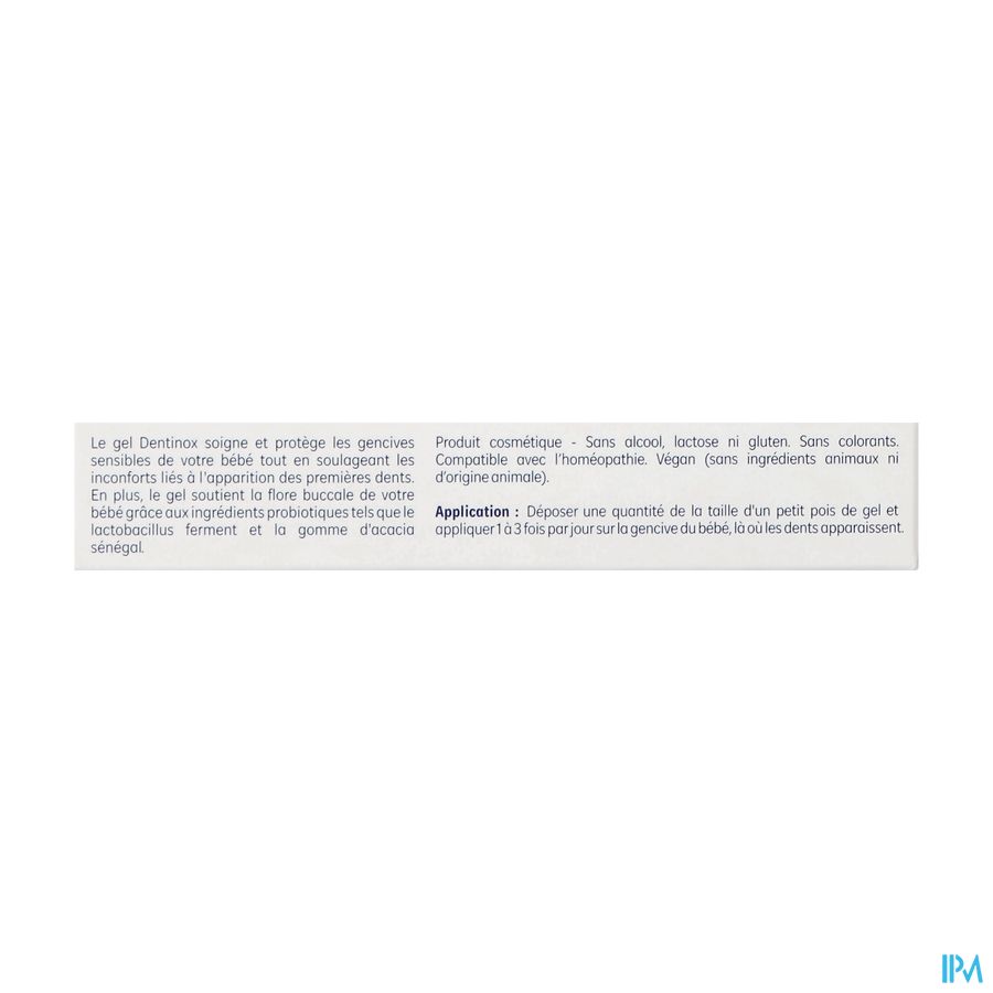 Dentinox Gel mag maximaal 3 keer per dag in een hoeveelheid ter grootte van een erwt op het tandvlees van je baby worden aangebracht.
