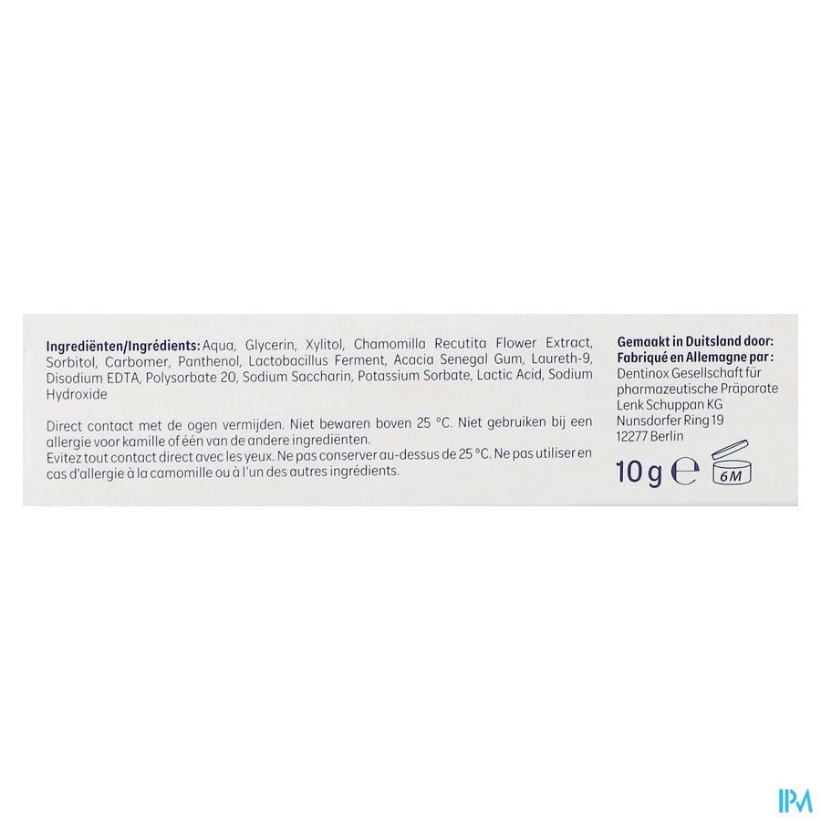 Aqua, Glycerin, Xylitol, Chamomilla Recutita Flower Extract, Sorbitol, Carbomer, Panthenol, Lactobacillus Ferment, Acacia Senegal Gum, Laureth-9, Disodium EDTA, Polysorbate 20, Sodium Saccharin, Potassium Sorbate, Lactic Acid, Sodium Hydroxide