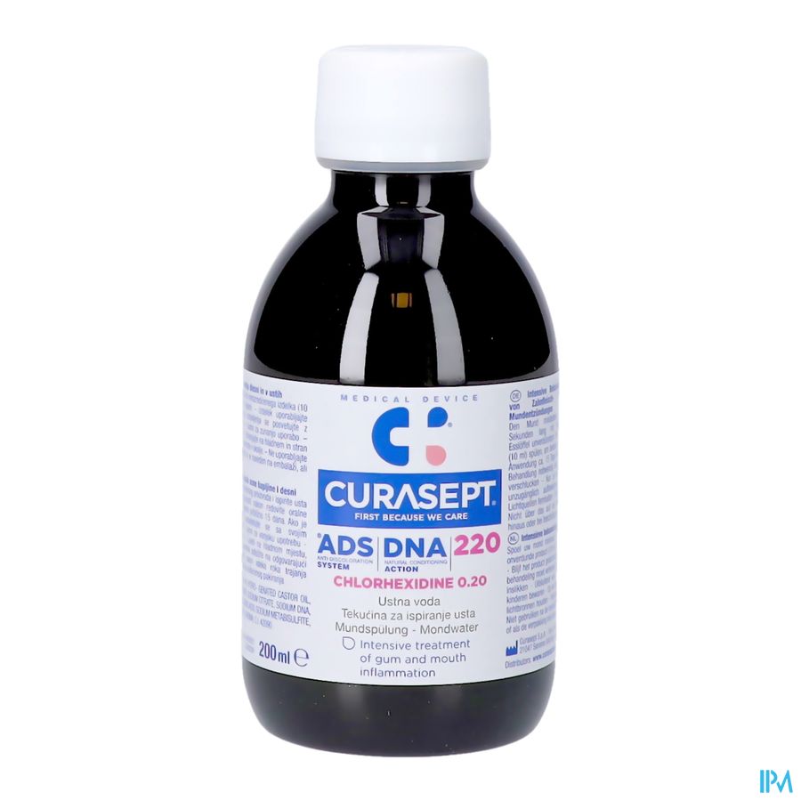 Curasept ADS DNA 220 0,20% CHX is een krachtige, alcoholvrije mondspoeling met 0,20% chloorhexidine, speciaal ontwikkeld voor intensieve mondhygiëne en het bevorderen van herstel van het tandvlees. Dankzij de unieke ADS® (Anti-Discoloration System) technologie wordt het risico op verkleuring van tanden en smaakverstoring sterk verminderd – een veelvoorkomende bijwerking van chloorhexidine.