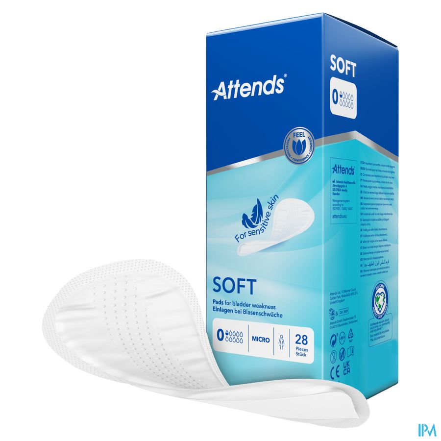 De nieuwe Attends Soft zijn uitzonderlijk dun en daardoor discreet, met een comfortabele zachte bovenlaag. Attends Soft producten hebben een natuurlijke pasvorm en bieden daardoor een perfecte bescherming tegen lekkage. Attends Soft 2 en 3 hebben zachte beschermrandjes voor extra veiligheid.