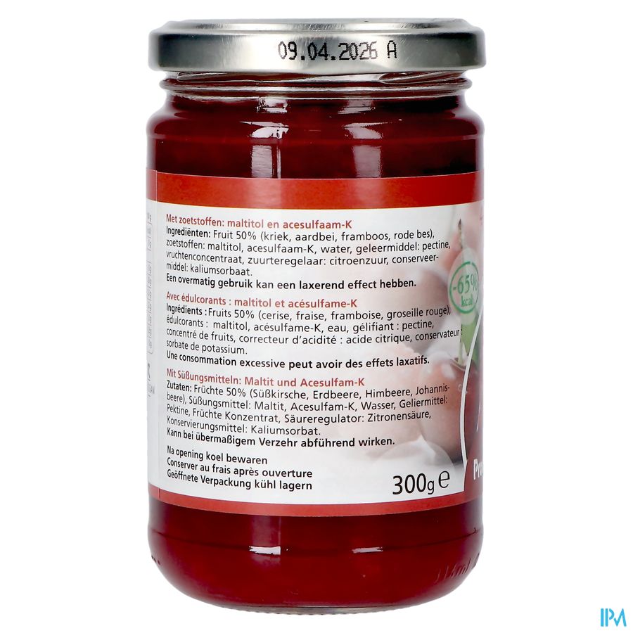 Confituur mixed fruit, gezoet met maltitol en acésulfaam K.