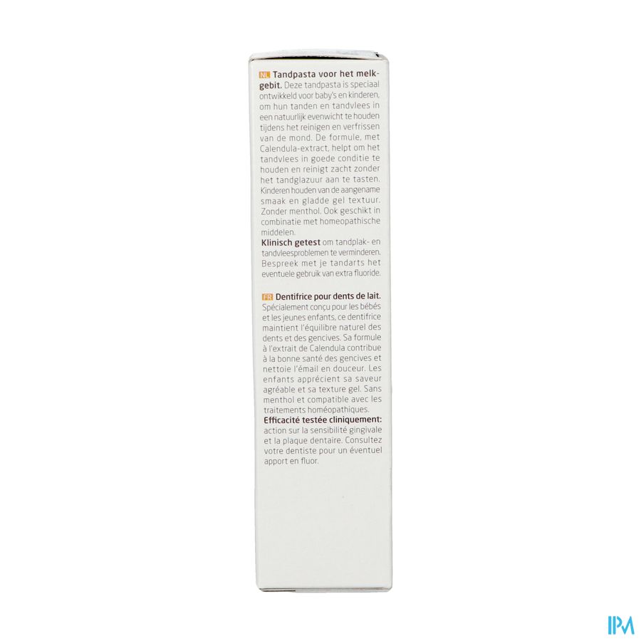 Kindertandpasta is speciaal voor kinderen ontwikkeld en afgestemd op de natuurlijke verzorging van de melktanden en de mondflora van kinderen. De tandpasta bevat uitsluitend natuurlijke bestanddelen die de gezondheid niet belasten als er een kleine hoeveelheid tandpasta wordt doorgeslikt. De tandpasta bevat geen fluoride, omdat die voldoende uit voeding kan worden gehaald. Wanneer in individuele situaties het gebruik van fluoride noodzakelijk is kan dit het best met een tandarts worden overlegd. Kan gebruikt worden in combinatie met homeopathische behandelingen.