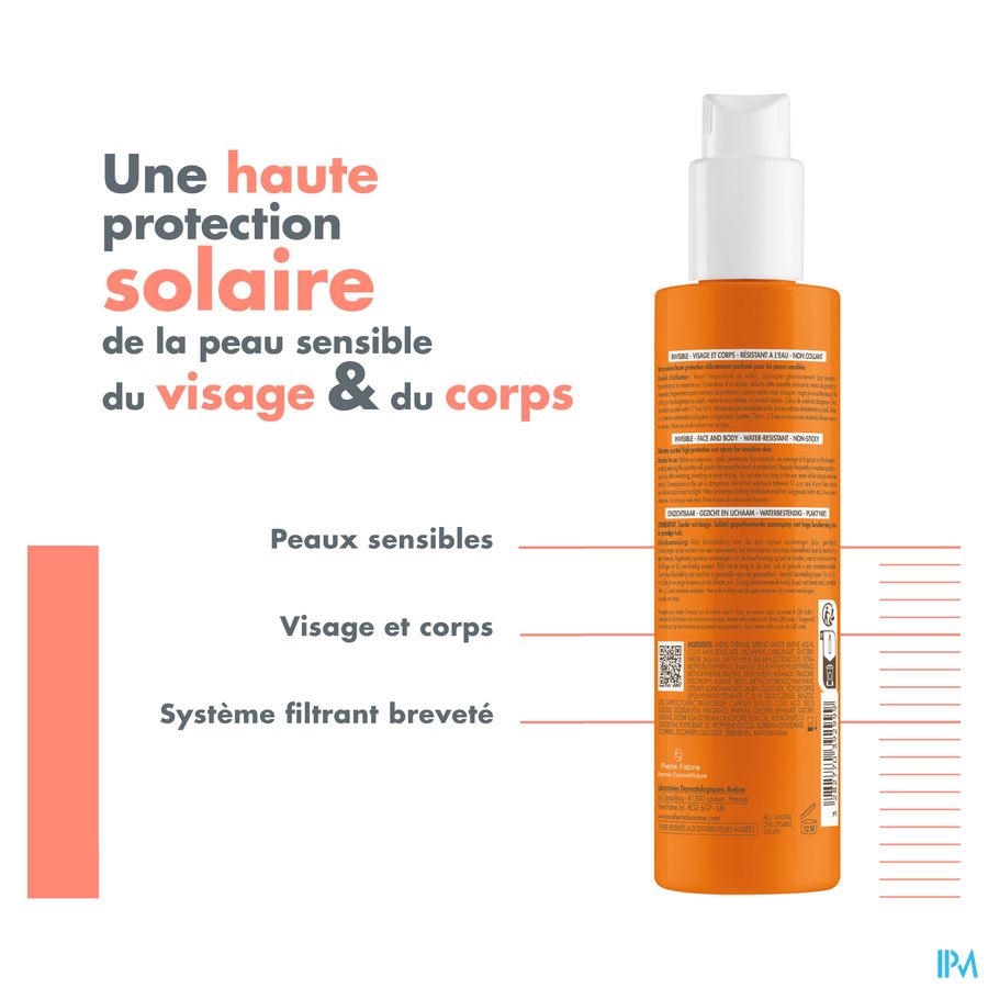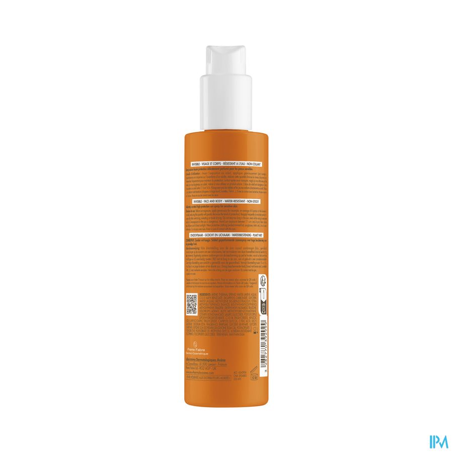 AVENE THERMAL SPRING WATER (AVENE AQUA). C12-15 ALKYL BENZOATE. DICAPRYLYL CARBONATE. GLYCERIN. WATER (AQUA). METHYLENE BIS-BENZOTRIAZOLYL TETRAMETHYLBUTYLPHENOL [NANO]. BIS-ETHYLHEXYLOXYPHENOL METHOXYPHENYL TRIAZINE. DIETHYLHEXYL BUTAMIDO TRIAZONE. DIISOPROPYL ADIPATE. BUTYL METHOXYDIBENZOYLMETHANE. CETEARYL ISONONANOATE. LAURYL GLUCOSIDE. POLYGLYCERYL-2 DIPOLYHYDROXYSTEARATE. C10-18 TRIGLYCERIDES. BENZOIC ACID. CAPRYLIC/CAPRIC TRIGLYCERIDE. CAPRYLYL GLYCOL. CITRIC ACID. DECYL GLUCOSIDE. DISODIUM EDTA. FRAGRANCE (PARFUM). GLYCERYL BEHENATE. GLYCERYL DIBEHENATE. HELIANTHUS ANNUUS (SUNFLOWER) SEED OIL (HELIANTHUS ANNUUS SEED OIL). POLYACRYLATE-13. POLYISOBUTENE. POLYSORBATE 20. PROPYLENE GLYCOL. SORBITAN ISOSTEARATE. TERPINEOL. TOCOPHEROL. TOCOPHERYL GLUCOSIDE. TRIBEHENIN. XANTHAN GUM