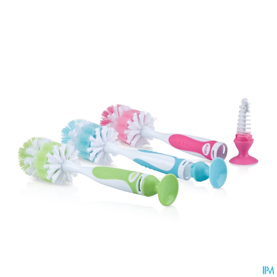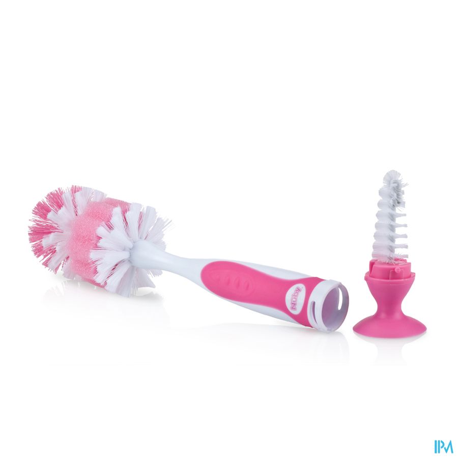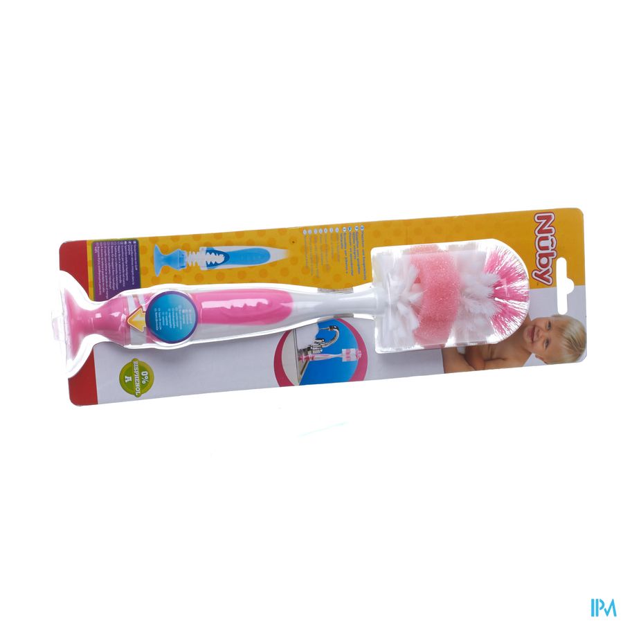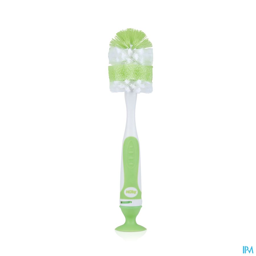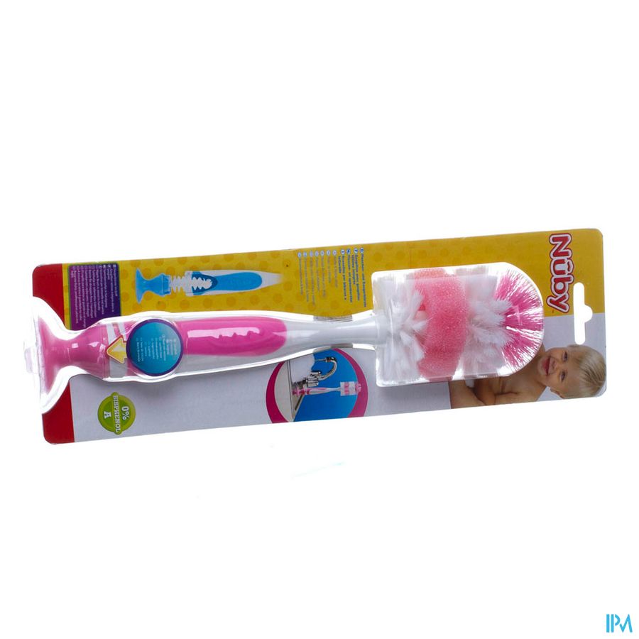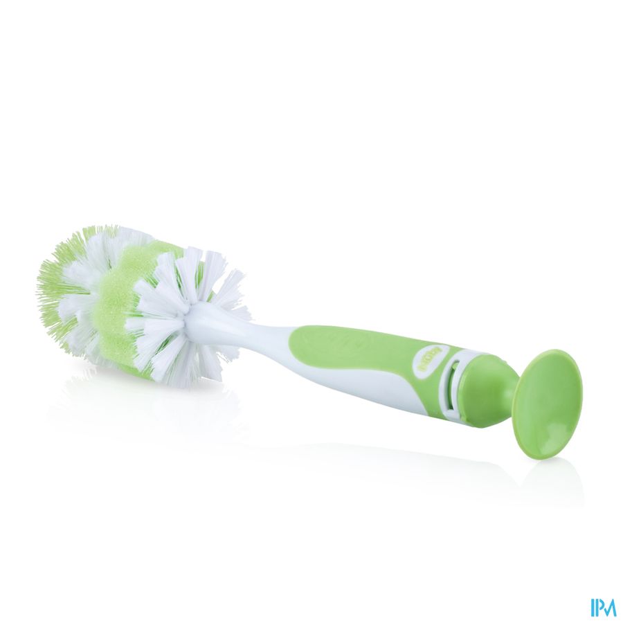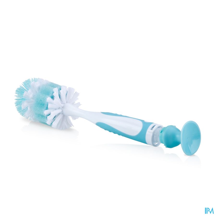 In de zachte handgreep zit een speenborsteltje, heel handig in gebruik. De borstelharen zijn van zachte en duurzame nylon gemaakt. De borstel is voorzien van een zuignap en kan gereinigd worden in het bovenste rek van de vaatwasmachine.