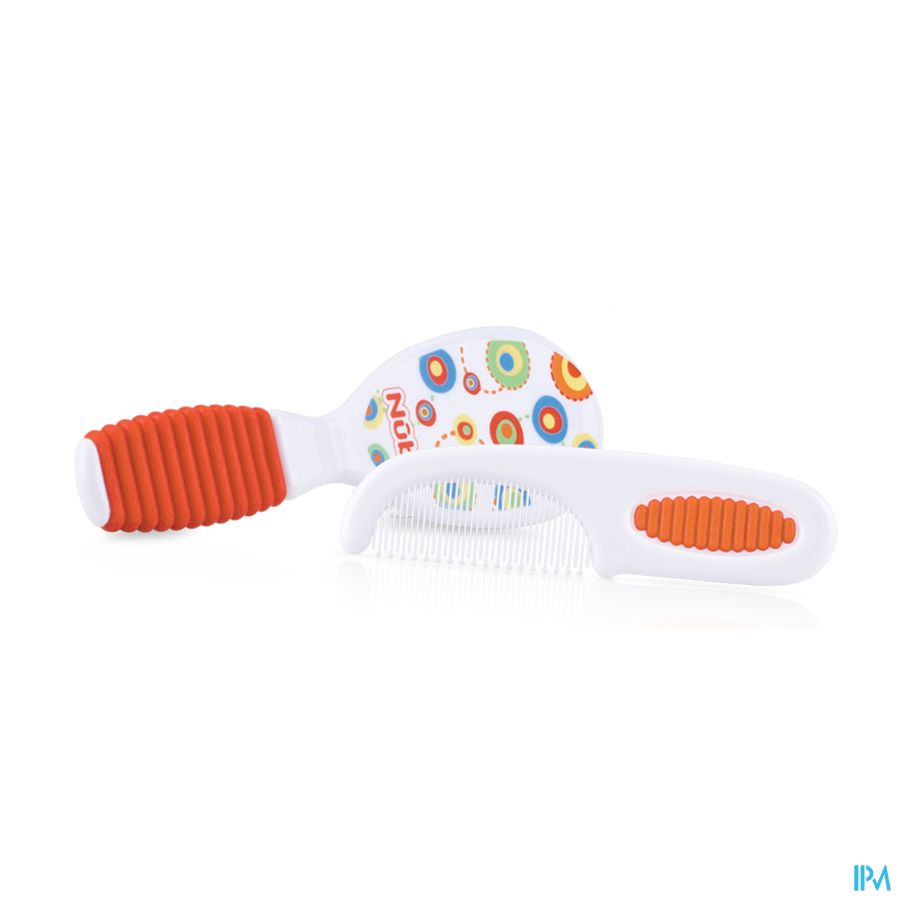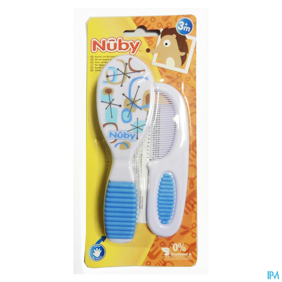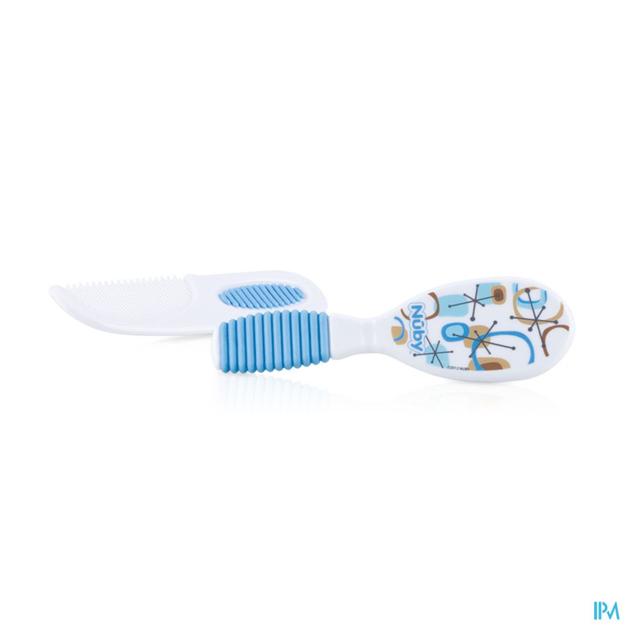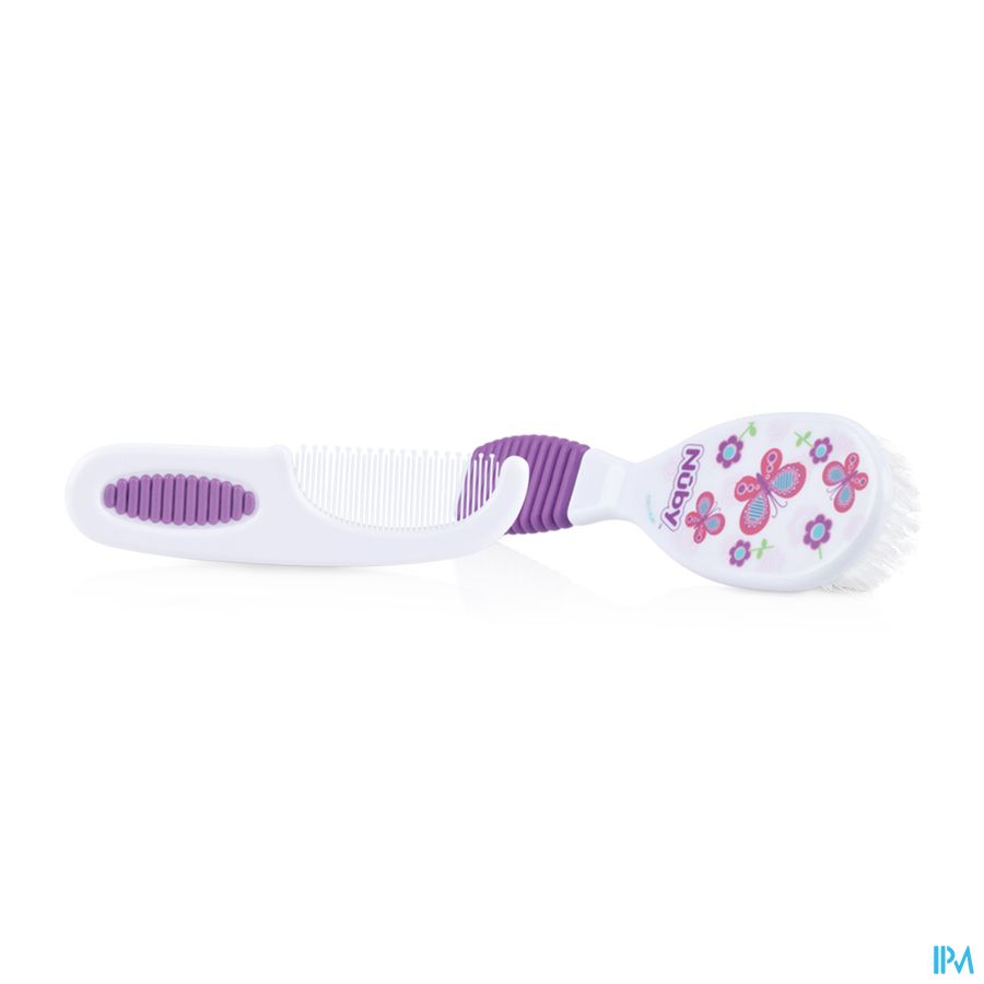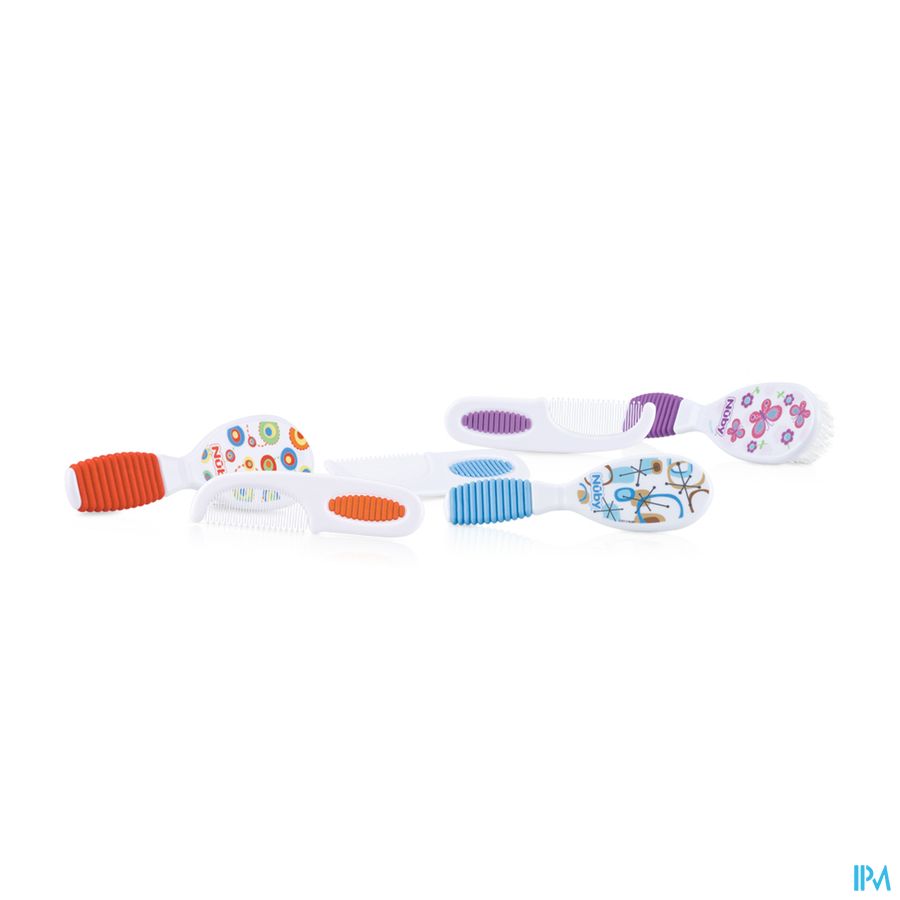 De kleurrijke kam en borstel set met zachte handgrepen van Nûby™ is speciaal ontworpen voor uw baby.