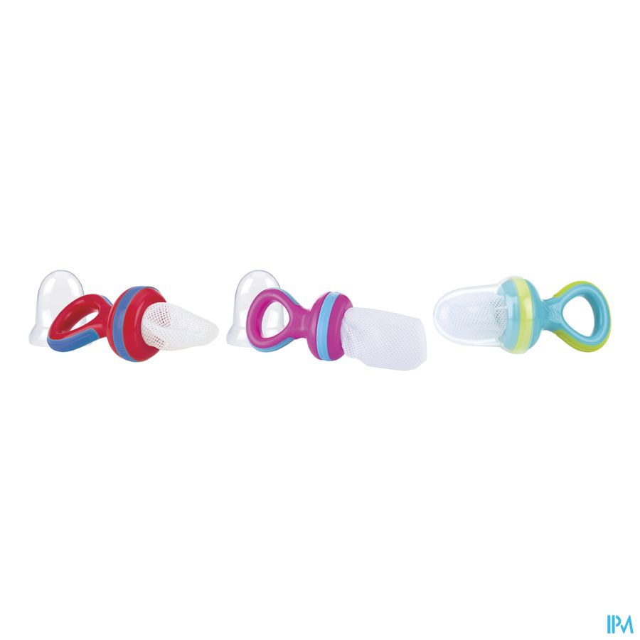 Doe stukjes fruit, groenten of koekjes in het netje; klik ze vast op de stabiele basis en stimuleer je kind in de ontdekkingstocht naar spannende nieuwe smaken en texturen, zonder risico op verslikken.