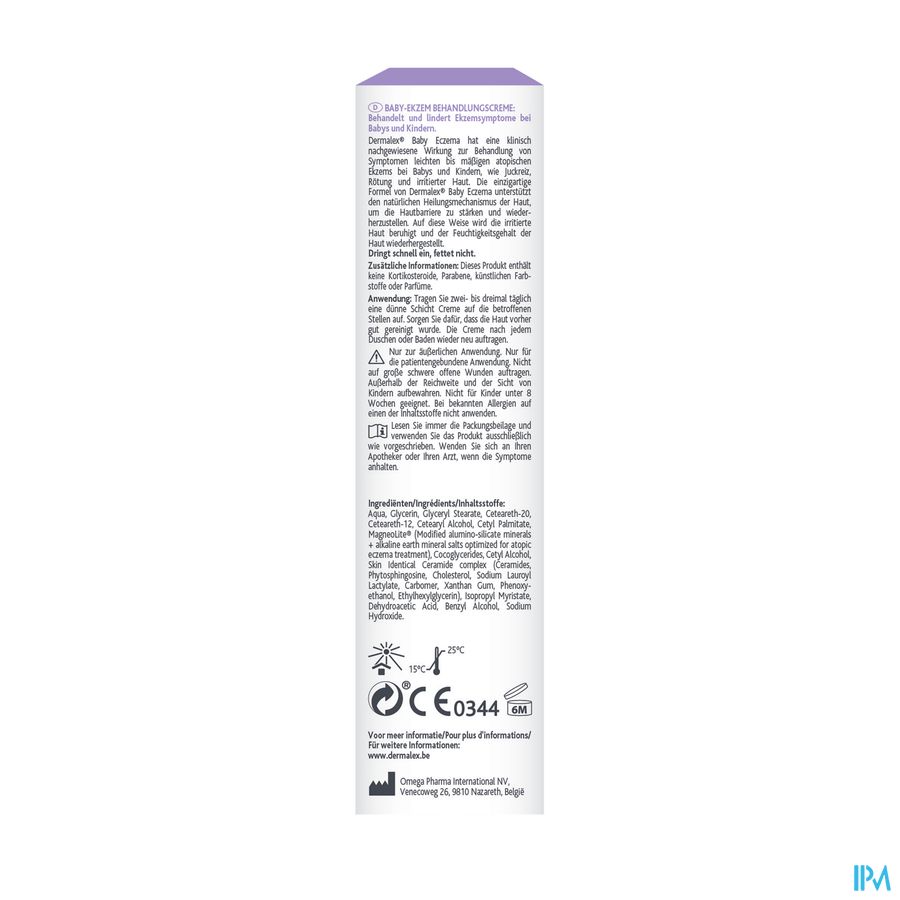 Aqua, Glycerin, Glyceryl Stearate, Ceteareth-20, Ceteareth-12, Cetearyl Alcohol, Cetyl Palmitate, MagneoLite® (Modified alumino-silicate minerals + alkaline earth mineral salts optimized for atopic eczema treatment), Cocoglycerides, Cetyl Alcohol, Skin Identical Ceramide complex (Ceramides, Phytosphingosine, Cholesterol, Sodium Lauroyl Lactylate, Carbomer, Xanthan Gum, Phenoxyethanol, Ethylhexylglycerin), Isopropyl Myristate, Dehydroacetic Acid, Benzyl Alcohol, Sodium Hydroxide.