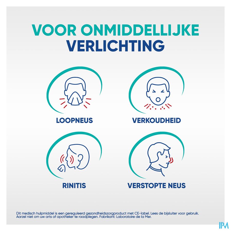 Het is klinisch bewezen dat de unieke combinatie van 100 % zuiver hypertonisch zeewater en essentiële oliën de neus onmiddellijk (binnen 1 min. (1)) vrijmaakt en ontzwelt.