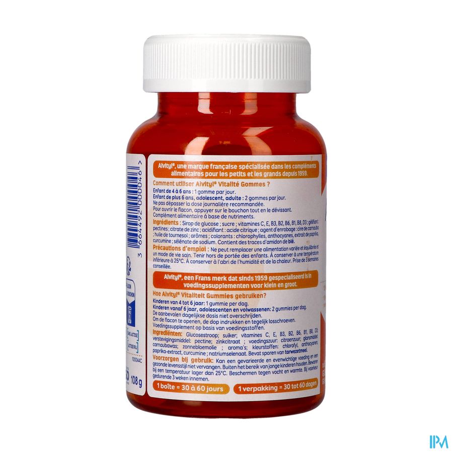 Alvityl® Vitality Gums 10 vitaminen en mineralen: heerlijke gommen met natuurlijke fruitsmaken, om u te helpen met een gemakkelijkere dagelijkse inname. Vitaminen B2, B3, B6 en C zorgen voor de vitaliteit van kinderen vanaf 4 jaar en van ouders door vermoeidheid te helpen verminderen.vermoeidheid te bestrijden