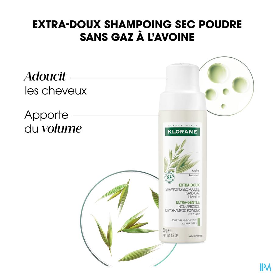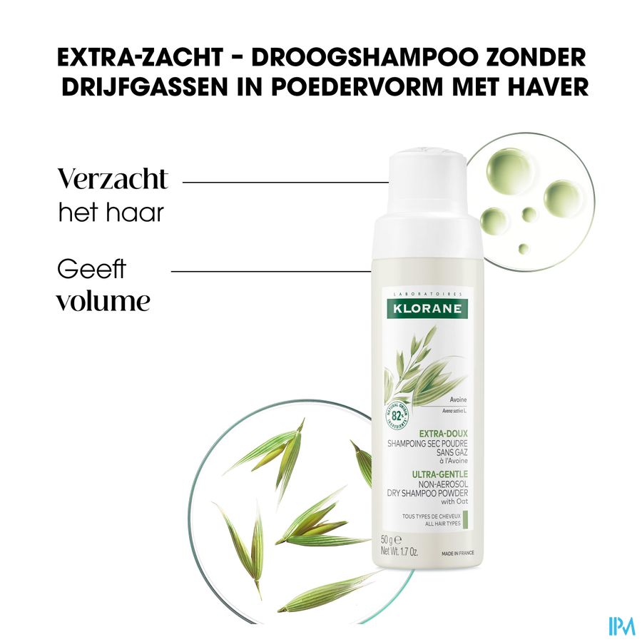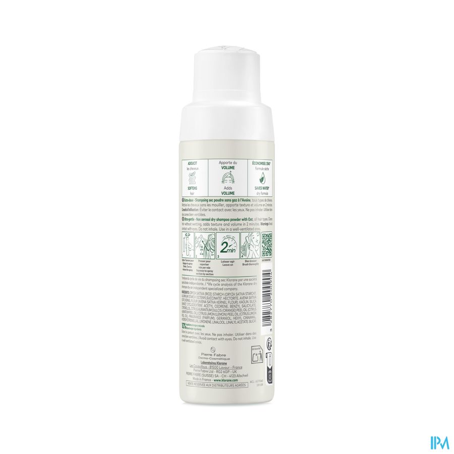 Zacht en doeltreffend, de extra-mild droogshampoo in poedervorm zonder gas met medicinale Haver van Klorane maakt het gemakkelijk om het haar te reinigen zonder het nat te maken. Deze goedverdragen "Rotopoudre" formule zonder gas haalt zijn kracht uit Haver, bekend om zijn verzachtende eigenschappen, en ultra-absorberende poeders. De losse poeder reinigt het haar en absorbeert overtollig talg wanneer deze op droog haar wordt aangebracht. Binnen 2 minuten geeft de poeder het haar bovendien textuur en volume*.** De Klorane droogshampoo zonder gas is extra zacht voor het haar en helpt water te besparen: 1 gewone shampoo vervangen door 1 droogshampoo bespaart 500L water per jaar***.