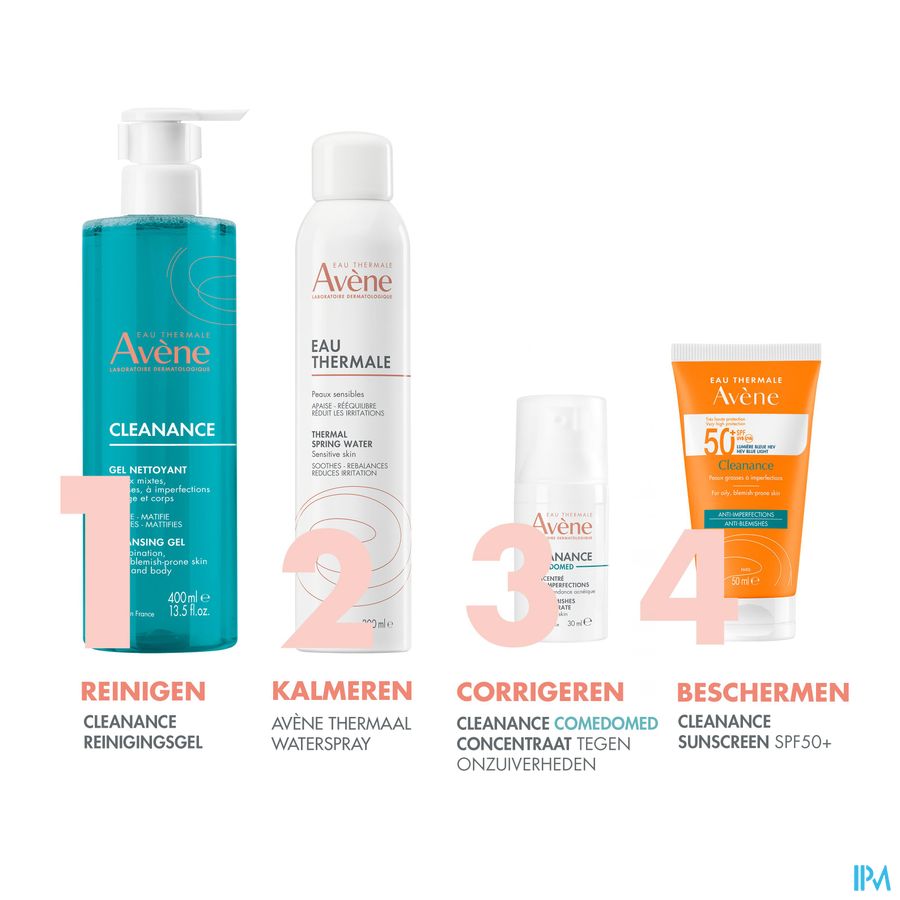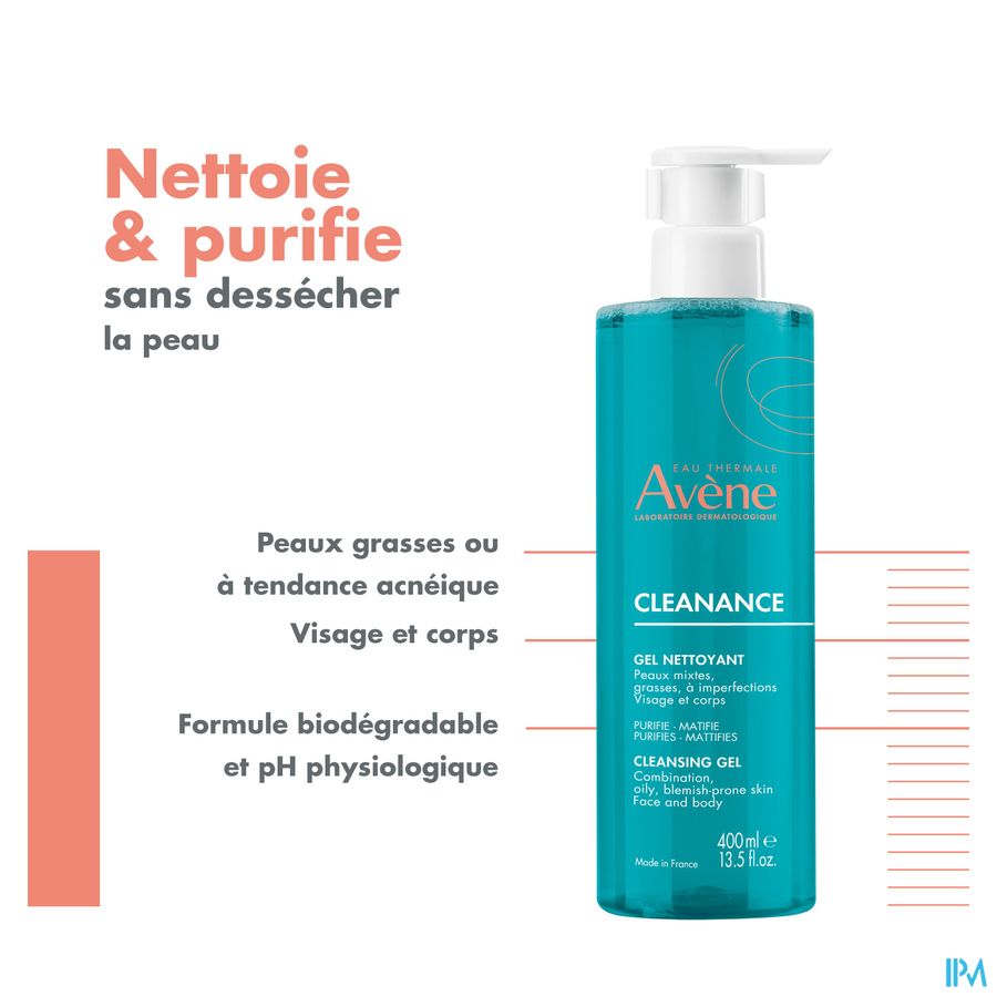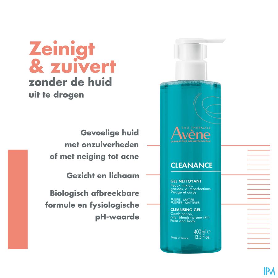 Een zuiverende, licht schuimende reinigingsgel voor de vette en/of acnegevoelige huid. Cleanance Reinigende gel is geschikt voor personen die contactlenzen dragen. Zeepvrije formule met fysiologische pH-waarde en optimale huidtolerantie. De formule, die de gevoelige huid respecteert, bevat een unieke combinatie van bestanddelen met een drievoudig voordeel: de milde samenstelling zorgt voor een zachte reiniging, terwijl de unieke eigenschappen van het gepatenteerde*, plantaardige extract Comedoclastin™ — een actief bestanddeel afkomstig van Mariadistelzaden — het overtollige talg verminderen en voor een matterend effect zorgen. Bovendien is het bijzonder aangenaam op de huid dankzij het verzachtende en anti-irriterende Thermaal water van Avène. De huid is schoon, fris, gezuiverd en glimt minder. Bioafbreekbare formule**.