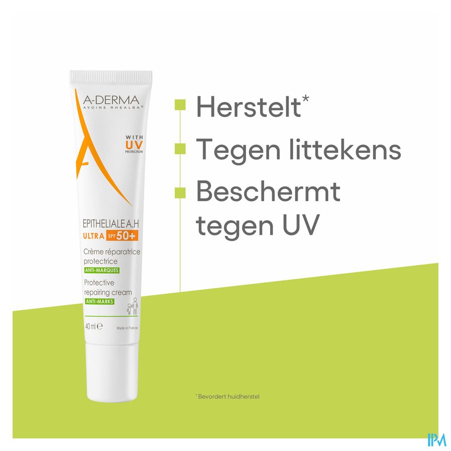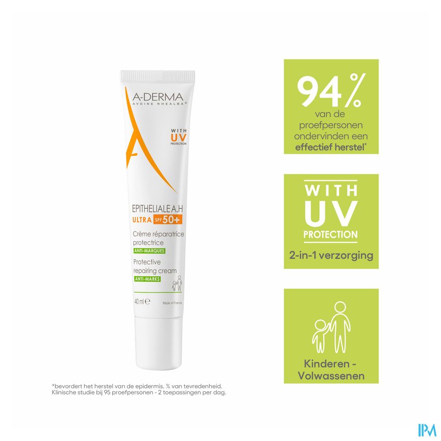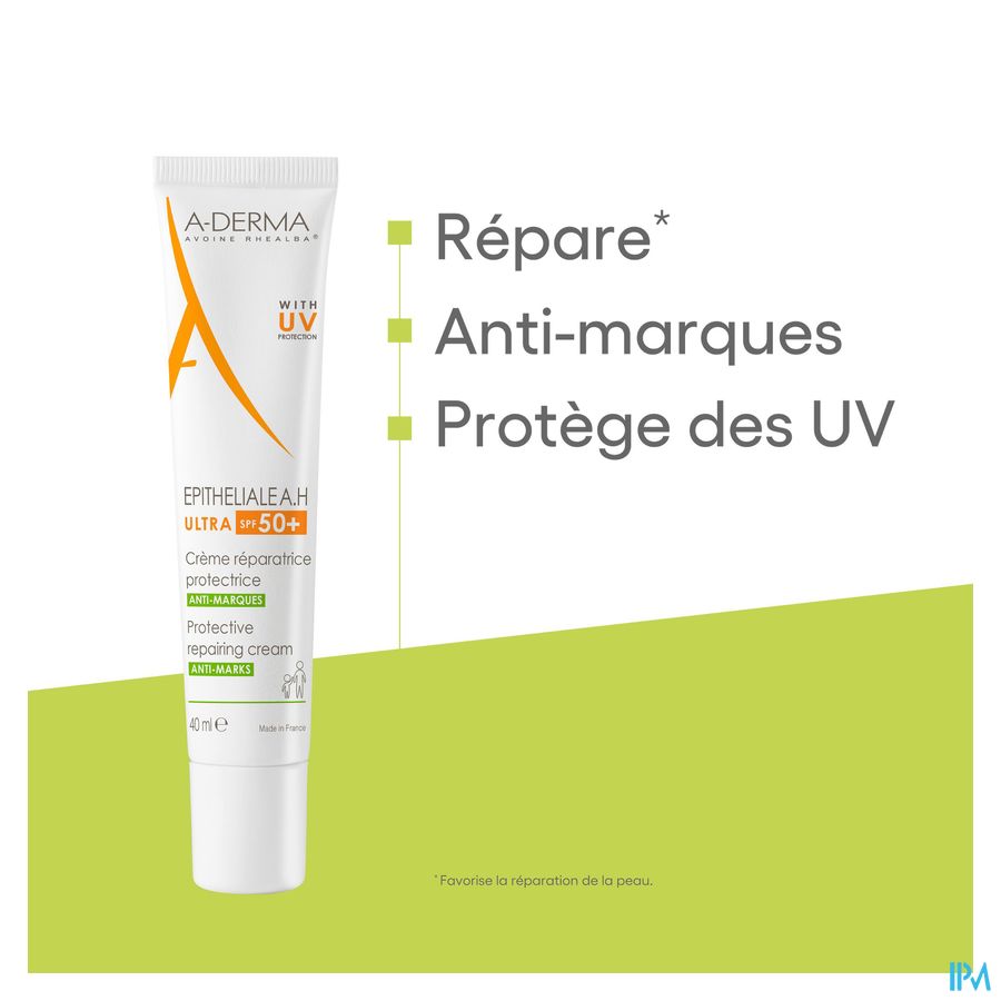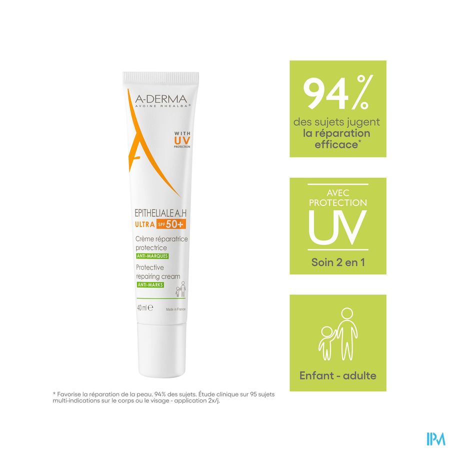 De EPITHELIALE A.H ULTRA SPF50+ 2-in-1 verzorging versnelt het herstel* van de fragiele huid en biedt een zeer hoge zonnebescherming van SPF 50+ met een dubbele werking tegen bruine en rode vlekjes. De formule bevat een gepatenteerd herstellend complex tegen vlekken van 3 actieve ingrediënten genaamd Cicahyalumide® (dipeptide, hyaluronzuur en Rhealba® Haverplantextract) en Peruaanse liaan om ongemakken van de huid te verzachten. Voor een hoge tolerantie bevat het een fotobeschermend systeem met slechts 4 filters in een geoptimaliseerde concentratie die op het huidoppervlak blijven, zelfs als deze gefragiliseerd is. Het is niet geparfumeerd en geschikt voor zowel kinderen als volwassenen. Het kan regelmatig op het gezicht en lichaam worden aangebracht.* Bevordert het herstel van de épidermis. Rhealba® Haver van biologische landbouw. Vegan info: zonder ingrediënten van dierlijke oorsprong