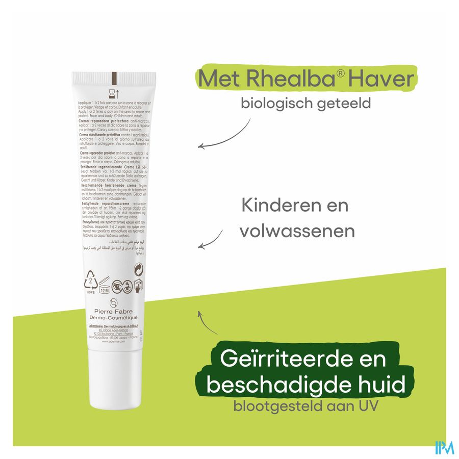 • VERSNELT HET HERSTEL* van de fragiele huid. • WERKT TEGEN rode en bruine vlekken: ideaal na een oppervlakkige behandeling van de huid of een oppervlakkige dermatologische of esthetische ingreep. • BESCHERMT de huid tegen de schadelijke effecten van de zon met zijn zeer hoge SPF 50+ bescherming.