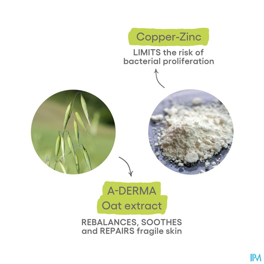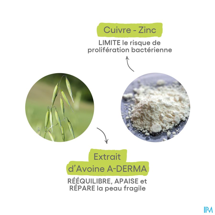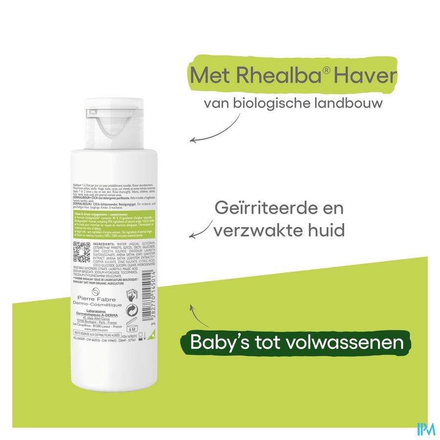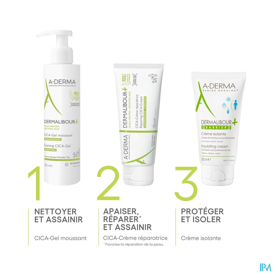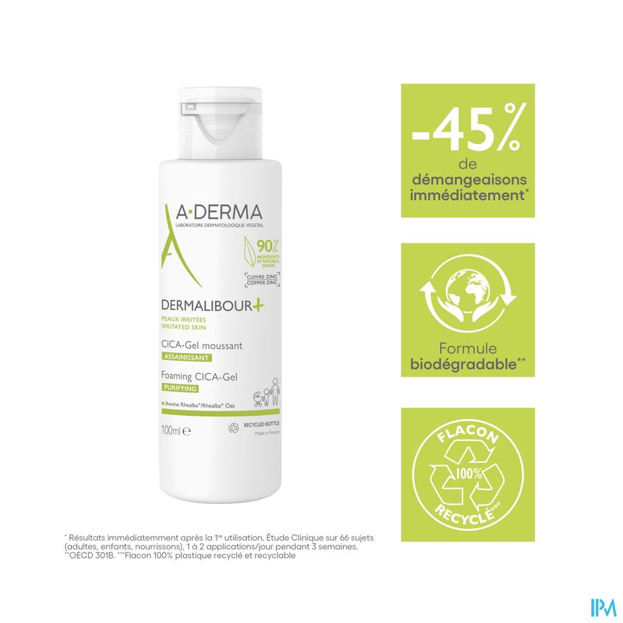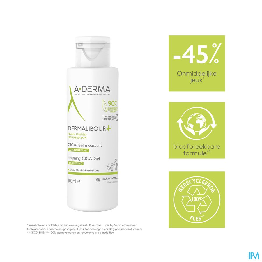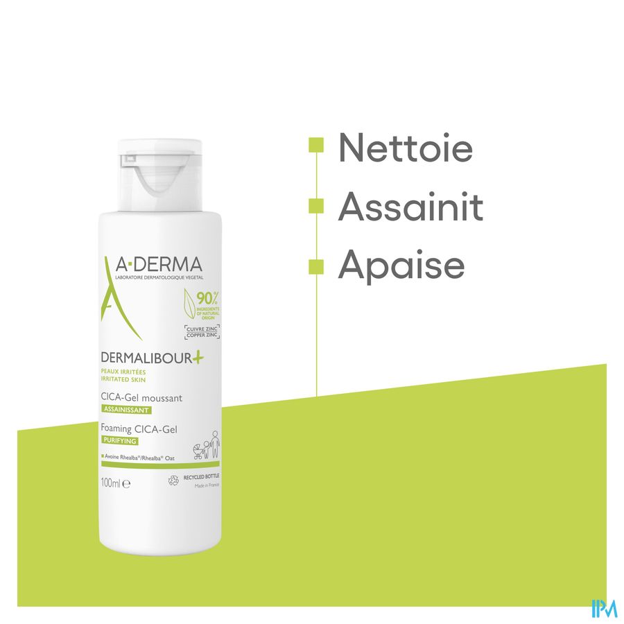Het dermatologisch en plantaardige laboratorium A-DERMA komt tegemoet aan de behoeften van de geïrriteerde en kwetsbare huid die rood is, jeukt en nood heeft aan een hygiëneproduct dat zowel mild als zuiverend is. DERMALIBOUR + CICA – Schuimende Reinigingsgel is geschikt voor de geïrriteerde huid van het hele gezin, reinigt in alle zachtheid en kalmeert onmiddellijk en zuivert de huid. Het bevat een koper-zinkcomplex, Rhealba® Haverplantextract en ultramilde oppervlakteactieve stoffen. De formule, met 90% ingrediënten van natuurlijke oorsprong en een fysiologische pH, vormt een delicaat en romig schuim dat niet prikt in de ogen. Het kan worden gebruikt op het lichaam, de hoofdhuid en zelfs op het gezicht en de uitwendige intieme delen. BIOLOGISCH AFBREEKBARE* formule, niet geparfumeerd en zonder zeep. DERMALIBOUR+ CICA – Zuiverende Schuimende Reinigingsgel kalmeert irritaties en kan overal en door iedereen gebruikt worden (baby's, kinderen, volwassenen).