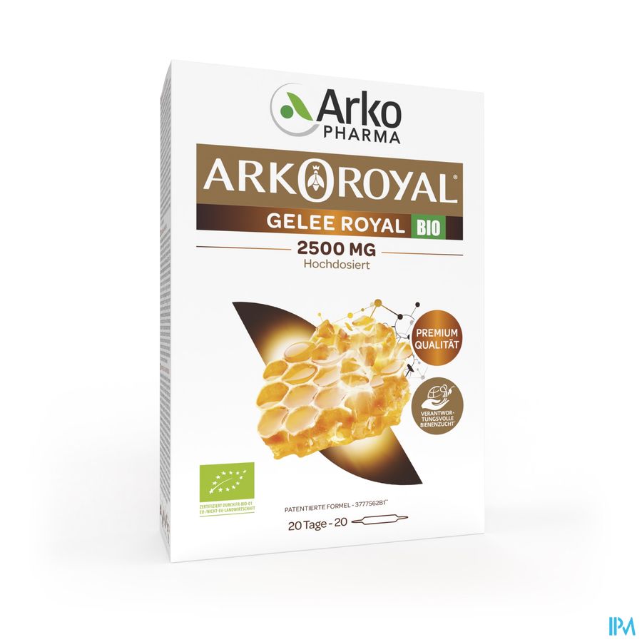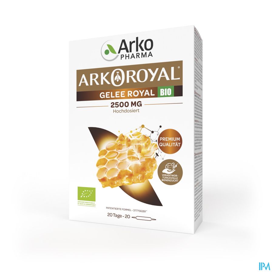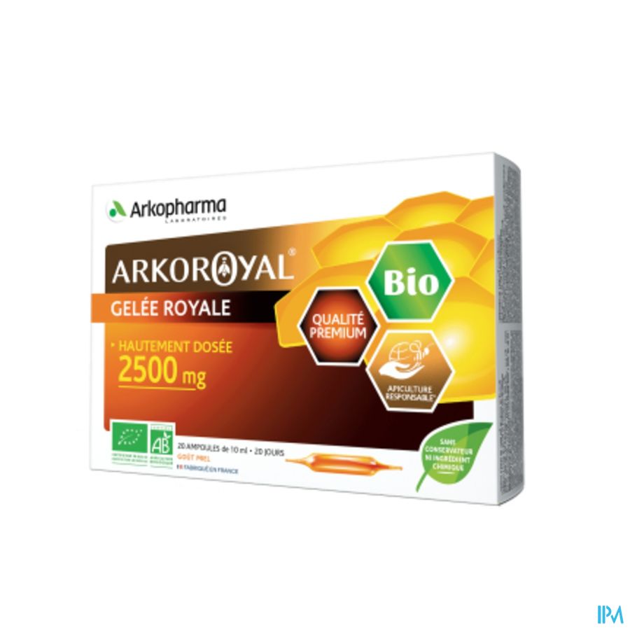 Arkoroyal Koninginnenbrij BIO 2500 mg is een voedingssupplement op basis van sterk gedoseerde BIO Koninginnenbrij. Zijn hoge dosis is bijzonder gepast tijdens de winterperiode. Arkoroyal® Koninginnenbrij BIO 2500 mg is geformuleerd zonder chemische ingrediënten, zonder bewaarmiddelen en zonder kleurstof.
