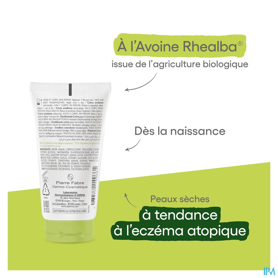 De jeukwerende EMOLLIËRENDE CRÈME helpt, met slechts één toepassing per dag jeuk te kalmeren* en irritatiepieken te spreiden, terwijl het roodheid van droge huid met neiging tot atopisch eczeem vermindert. De 360° effectiviteit maakt de huid minder droog, versterkt de huidbarrière en helpt het microbioom weer in evenwicht te brengen**. Een voedende crème met een niet-vette en niet-plakkerige textuur voor een drievoudig verzachtende werking in één toepassing per dag. Een formule op basis van Rhealba® Haverplantextract (jonge haverscheuten), met 95% ingrediënten van natuurlijke oorsprong en niet geparfumeerd, voor gebruik vanaf de geboorte. Een dagelijkse, doelgerichte, doeltreffende en geruststellende behandeling die de kwetsbaarheid van de droge huid met atopische neiging respecteert en het dagelijkse leven van de huid verbetert.