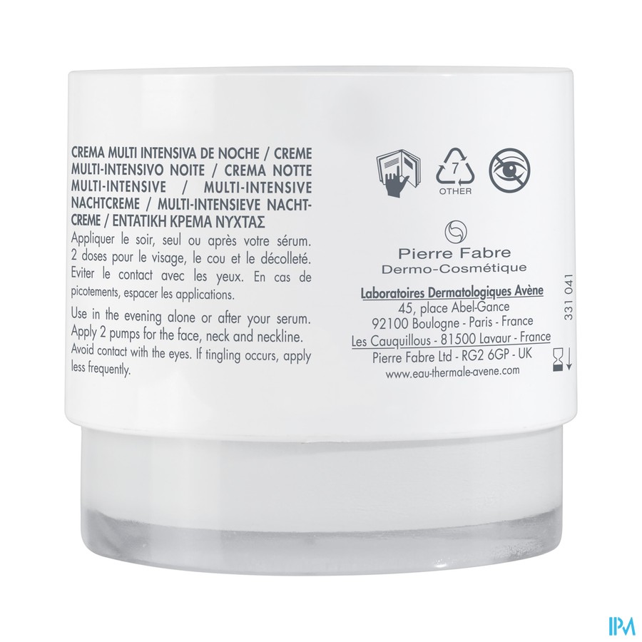 Multi-intensieve nachtcrème is een complete herstellende verzorging met 4 actieve bestanddelen: Retinal, niacinamide, hyaluronzuur, Haritaki. Deze herstellende nachtcrème stimuleert de aanmaak van cellen en verlengt hun levensduur *: dit bevordert langdurig het huideigen celvernieuwingsproces. Vanaf 15 dagen: de huid is bij het ontwaken gladder**. Na 15 dagen ziet de huid er steviger uit** Getest op alle huidtypes. Formule die voor 97% uit bestanddelen van natuurlijke oorsprong bestaat.