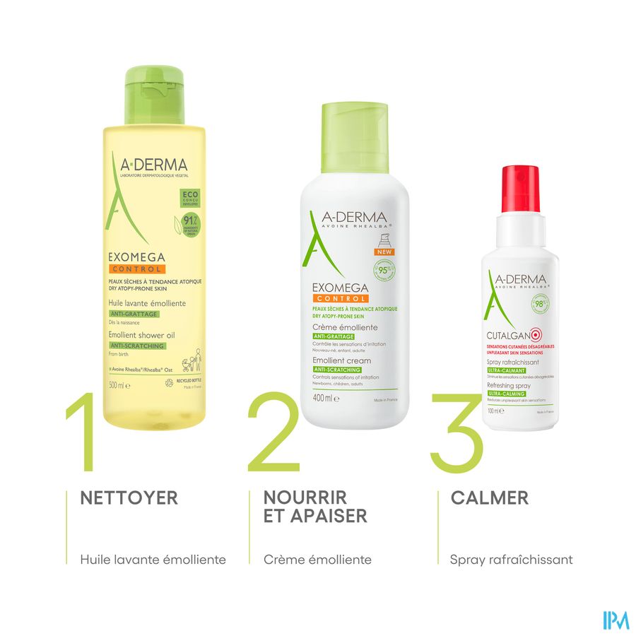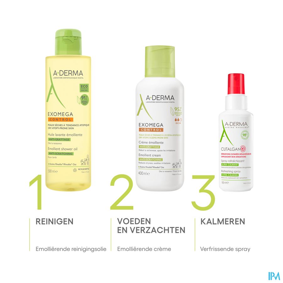 • REINIGT de droge en atopische huid van zuigelingen, kinderen en volwassenen in alle zachtheid. EXOMEGA CONTROL Emolliërende Reinigingsolie beschermt de huid tegen trekkerigheid en uitdroging. • KALMEERT de jeuk van de droge huid die vatbaar is voor atopisch eczeem. • BESCHERMT de fragiele huid. Zeepvrij, BIOLOGISCH AFBREEKBAAR* en geformuleerd met 91% natuurlijke ingrediënten. De Reinigingsolie prikt niet in de ogen en is dus perfect voor het hele gezin. Het is verpakt in een 100% recycleerbare eco-hervulbare verpakking die geproduceerd is met 76% minder plastic dan de 500ml fles.