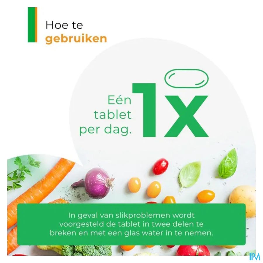 1 tablet per dag. Bij slikproblemen wordt aangeraden de tablet in twee delen te breken en met een glas water (250 ml) in te nemen.
