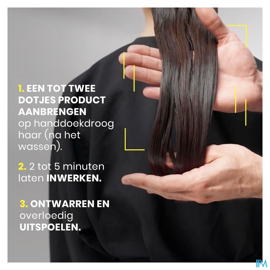 Na het wassen één of twee dotjes product op handdoekdroog haar aanbrengen. 2 tot 5 minuten laten inwerken. Ontwarren en overvloedig uitspoelen.