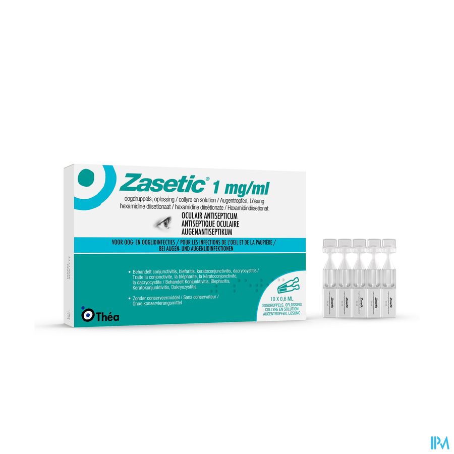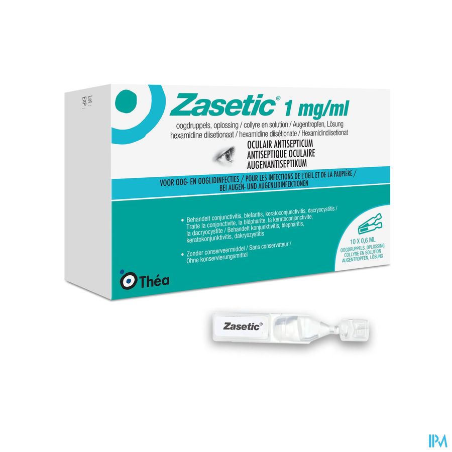 ZASETIC® is een antiseptische oogdruppel zonder bewaarmiddelen, gebruikt om het oog en de oogomgeving te ontsmetten bij infecties zoals conjunctivitis, blepharitis, keratoconjunctivitis of dacryocystitis.