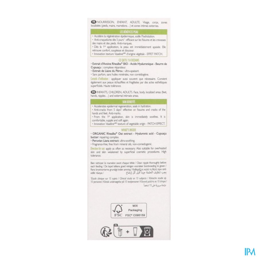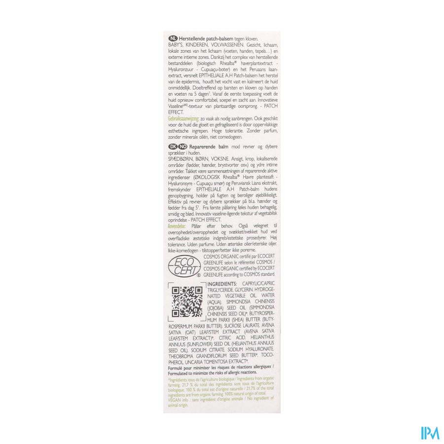 EPITHELIALE ULTRA REPAIR herstellende lippenbalsem-patch heeft een intense en snelle herstellende*, kalmerende en hydraterende werking op alle soorten gebarsten huid, kloven en barstjes. Een unieke textuur van gepatenteerde** 100% natuurlijke actieve vaseline met een ademend patcheffect. De formule van deze herstellende balsem bevat een herstellend complex van 3 actieve bestanddelen: Rhealba® Haver, Hyaluronzuur en Cupuaçuboter. Kattenklauw wordt ook gebruikt voor zijn uiterst kalmerende eigenschappen bij een onaangenaam huidgevoel. En voor een optimale tolerantie bevat EPITHELIALE ULTRA REPAIR herstellende lippenbalsem-patch geen parfum, is niet-comedogeen en geschikt voor baby's tot volwassenen. Het kan worden aangebracht op het gezicht, het lichaam, plaatselijke zones (voeten, handen, lippen, tepels, enz.) en uitwendige intieme zones. Rhealba® haver van biologische teelt Vegan Info: bevat geen ingrediënten van dierlijke oorsprong