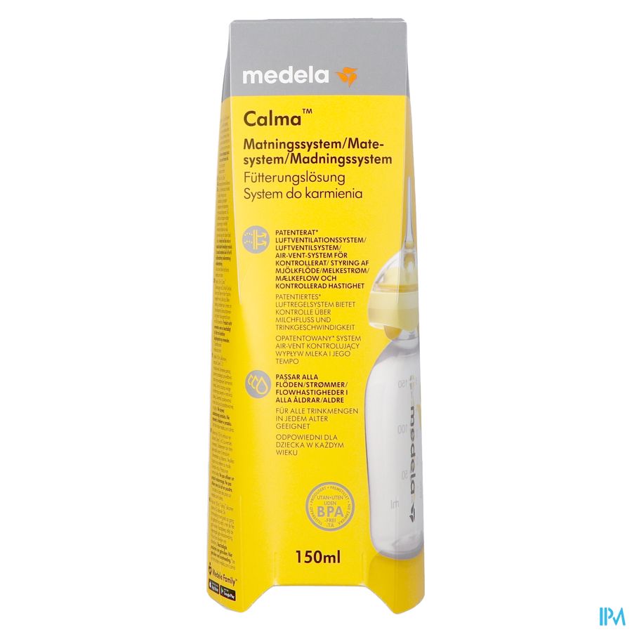 Het Calma™-voedingssysteem van Medela heeft een gepatenteerd luchtventilatiesysteem dat de melk alleen laat stromen als de baby zuigkracht creëert. Het is geschikt voor alle leeftijden, maakt het aanpassen van de melksnelheid overbodig en past op alle Medela-flessen.