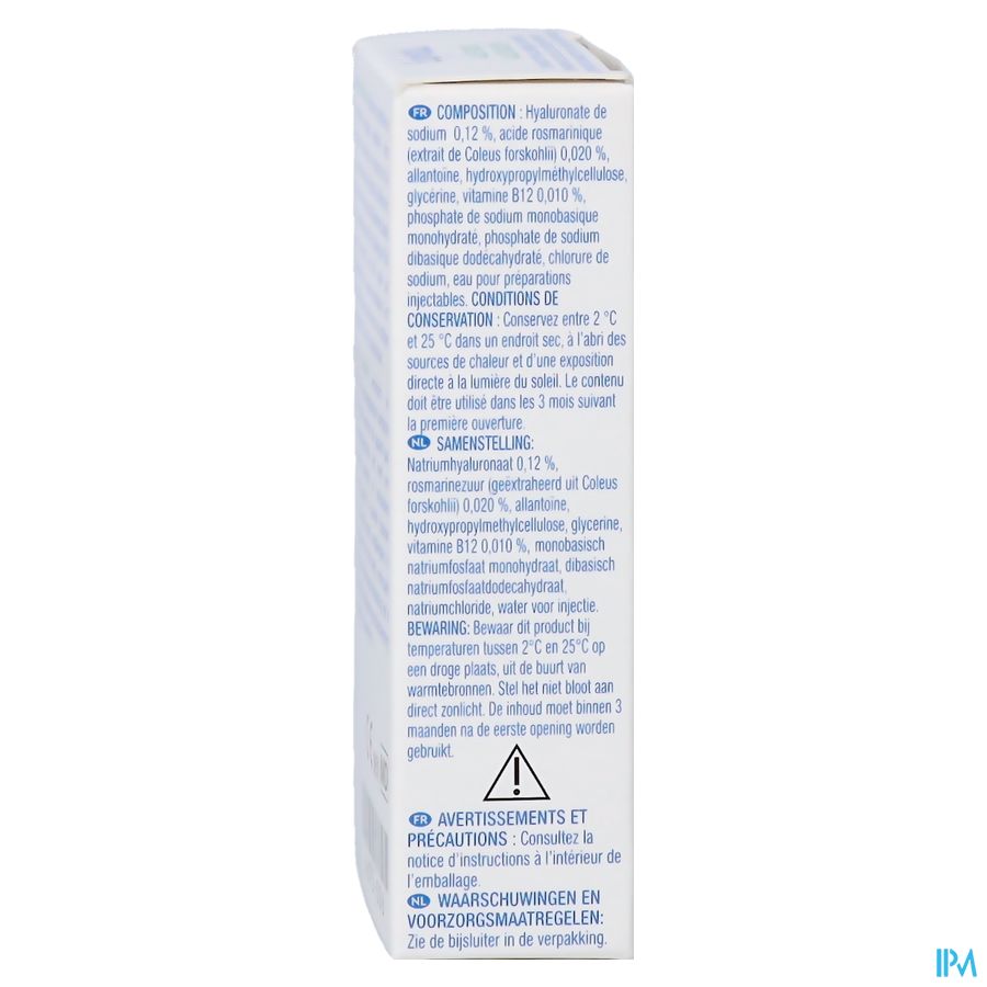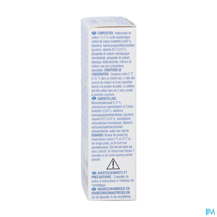 Natriumhyaluronaat 0,12 %, rosmarinezuur (geëxtraheerd uit Coleus forskohlii) 0,020 %, allantoïne, hydroxypropylmethylcellulose, glycerine, vitamine B12 0,010 %, monobasisch natriumfosfaatmonohydraat, dibasisch natriumfosfaatdodecahydraat, natriumchloride, water voor injectie.