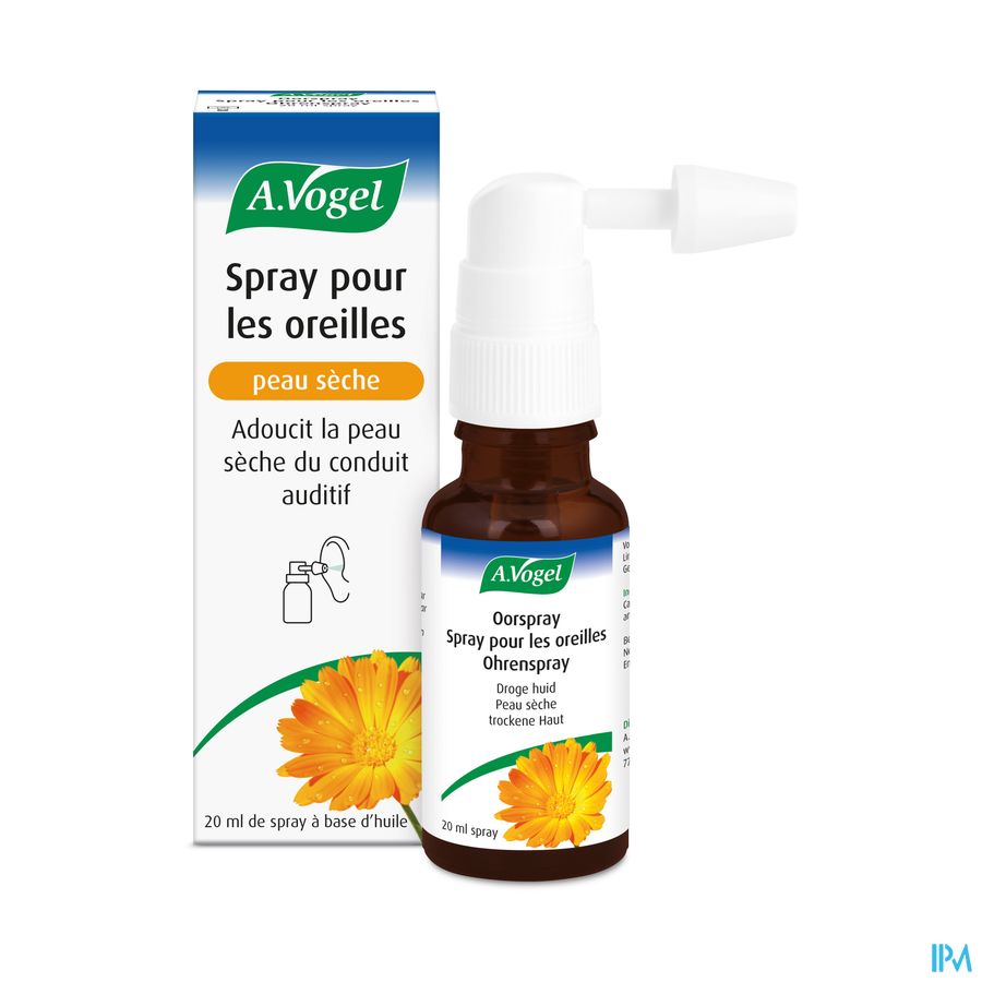 A.Vogel Oorspray Droge Huid is een spray op basis van kokosnootolie, zonnebloemolie en calendula-extract.